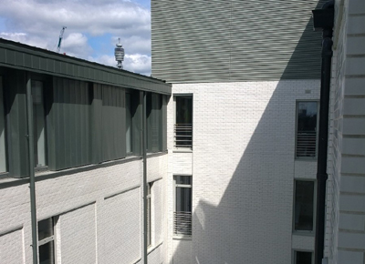 Logistically this project’s location was very challenging due to the footprint of the building which was completely surrounded by adjoining buildings and/or pedestrian walkways.